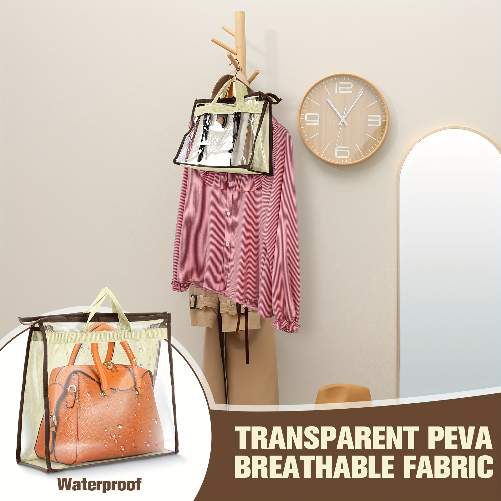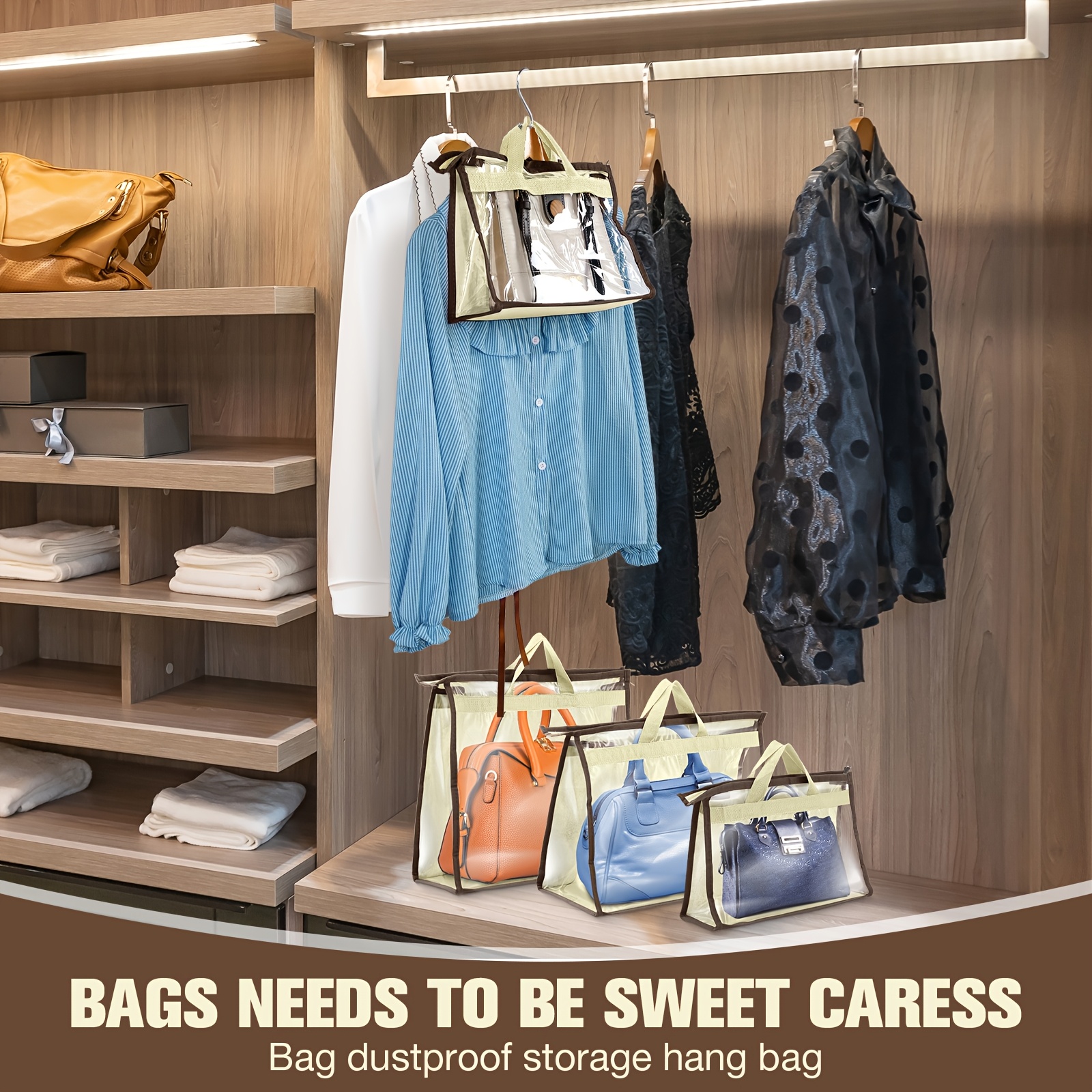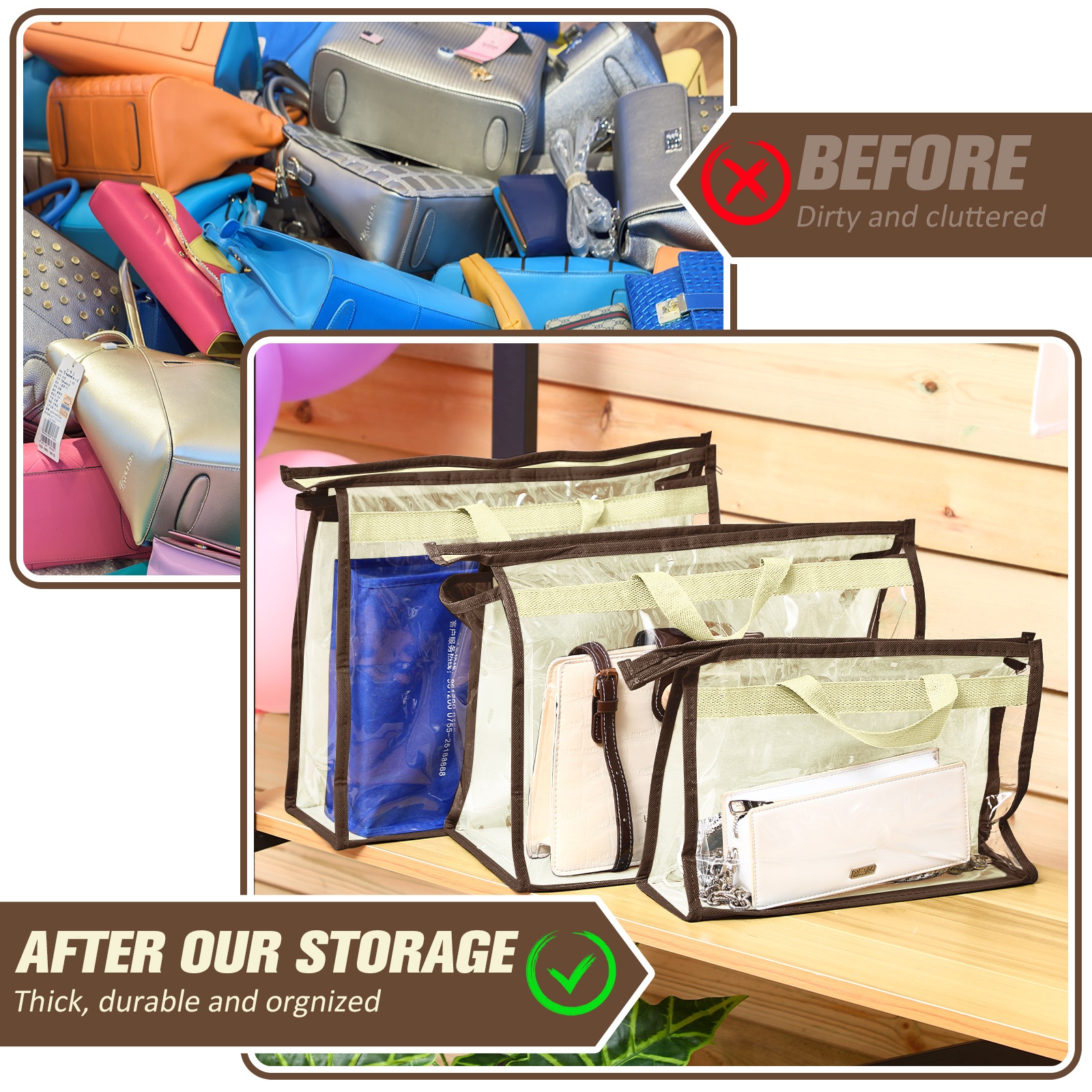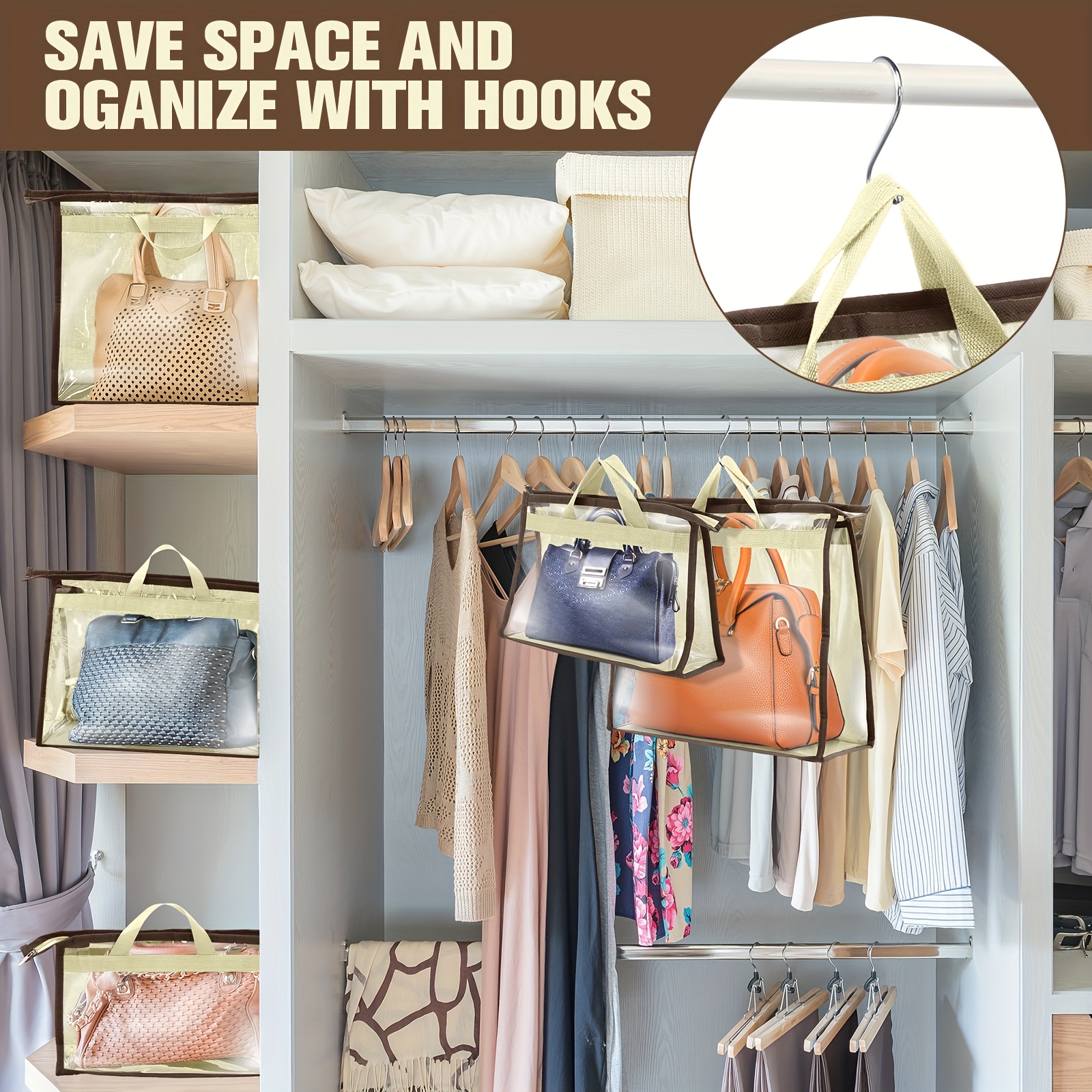 24 Pack Dust Bags for Handbags with 25 Stainless Steel S Shape Hooks, 3 Assorted Sizes Dust Cover Bags Damp Proof Purse Storage Handbags with Zippers And Handles for Closet Hanging